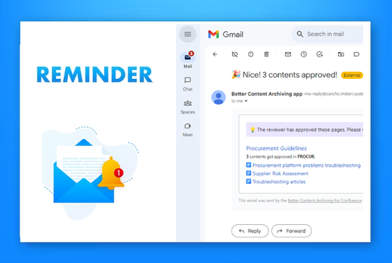 By setting up these reminders using the Better Content Archiving for Confluence app, you can ensure that page owners are informed about upcoming deadlines and updates.